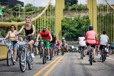 With 500 bikes ready to roll, we celebrated the official launch of Healthy Ride at the first Open Streets that took over Penn Avenue. We had over 150 bikes set up in Market Square, and our partners at Highmark Health and Allegheny Health Network joined us for a massive 8am group ride to open the route. I remember renting my very first Healthy Ride that morning at 42nd & Butler near my then apartment, and being VERY excited when it worked.